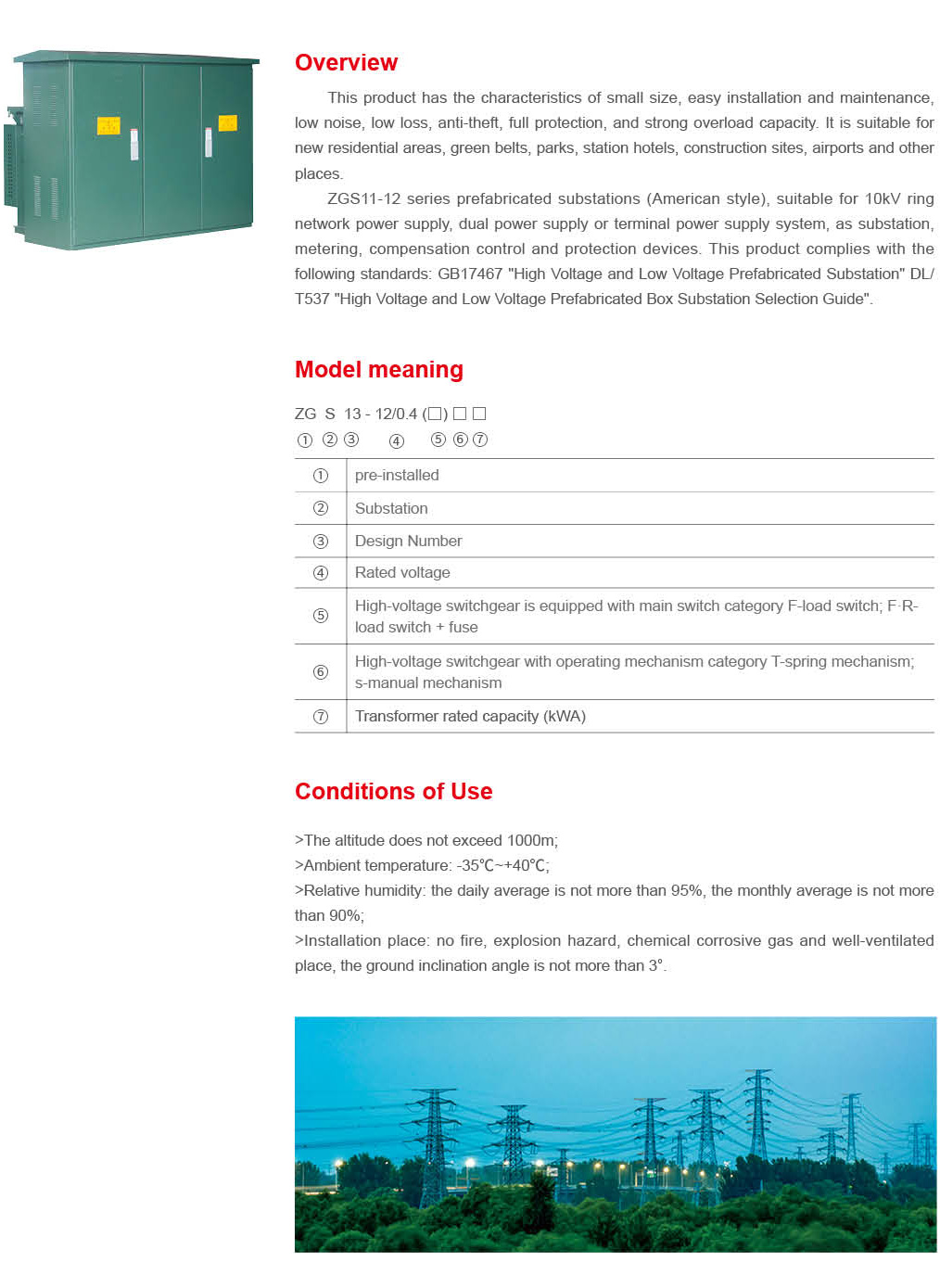 ZGS13-12/0.4 Combined American prefabricated substation